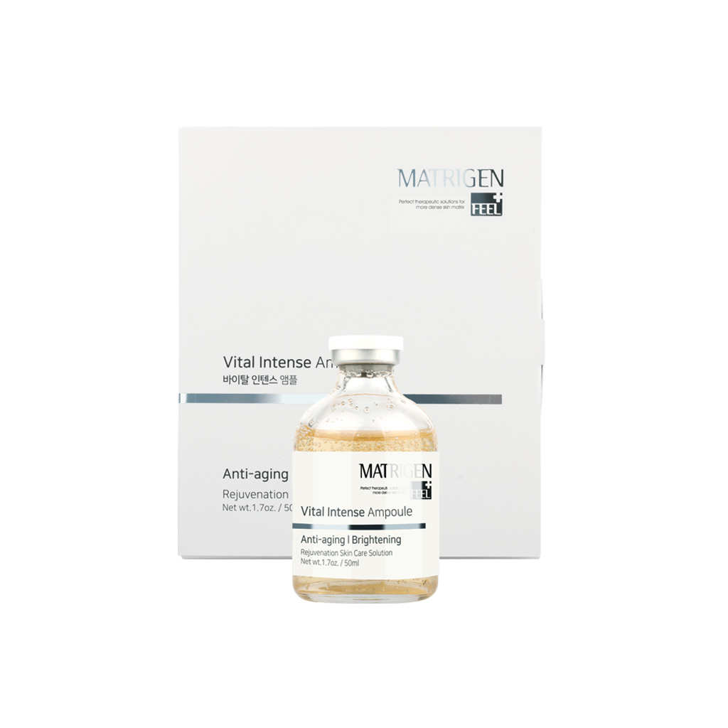 Matrigen E.S.R Vital Intense ampoule contains six peptide complex, PDRN, Stem Cell, EGF, and Adenosin for wrinkles reduction, anti-aging and skin rejuvenation. It is a double functional ampoule for whitening your skin tone and to help vitalizing, firming your skin.